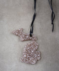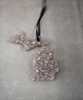 michigan car freshie, leather scent air freshener, pirate booty and crystal treasures, handmade car freshie, upper peninsula freshie, mitten state air freshener, michigan gift idea, rustic car freshie, michigan shaped freshie, scented car accessory