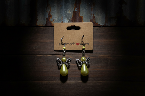 Yellow Angel Wing Pearl Drop Earring