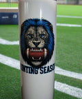 When it's Hunting Season, you come prepared—and this tumbler says it loud and proud. Featuring a detailed blue-maned lion clenching a football in its jaws, this design brings out your wild side with grit and ferocity. On the reverse side, bold lettering reads Grit Don’t Quit, making it the perfect game-day sidekick or motivational everyday mug. Made with durable stainless steel and a secure slider lid, it keeps drinks hot or cold no matter the season.