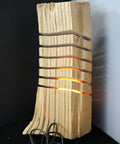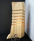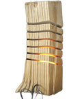 Elevate your cozy corners with this vertical rustic lamp handcrafted by Brian Chrismon. Made from a solid piece of Michigan hardwood, this tall log features smooth, wave-like cuts running through its length—each softly illuminated by warm yellow lighting. The unique organic shape retains bark textures and raw edges, making it as much a statement art piece as it is a source of ambient glow.