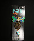 This handcrafted piece from Boho Bling adds a splash of whimsical beauty wherever you wear it. Featuring a sparkling green and blue enameled dragonfly, gold-tone wire-wrapped filigree, and a colorful dangling charm, this clip-on accessory is made for ultimate styling freedom. Wear it on your boots, in your hair, on a belt loop, or even as a necklace extender—the possibilities are endless. Made in the USA, each piece is a little work of boho-inspired wearable art.