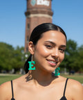 EMU Earrings, Eastern Michigan University Jewelry, EMU Spirit Wear, Harding Made Block E Earrings, Green E Resin Earrings, Michigan Made College Jewelry, Handmade EMU Fan Gear, Armade in MI Spirit Accessories