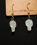 These handmade earrings feature dangling mummy charms with white and teal bandages and peeking cartoon eyes. Set in gold-toned hooks, they’re lightweight and fun, perfect for trick-or-treat night, costume parties, or just showing off your love for Halloween. A whimsical accessory that makes a great seasonal gift or a festive addition to your jewelry collection.