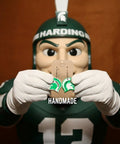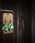Bold green and white Spartan helmet earrings for spirited fans and proud Michiganders.
