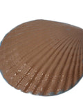 Made from a real scallop shell with a hand-painted brown back and vivid blue edge