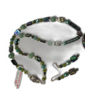Outrageously Millie brings another coastal gem to life with this handcrafted necklace and earring set. The necklace showcases a stunning round pendant with a three-part swirl design filled with vibrant abalone shell, reflecting ocean blues, greens, and purples. Accented with a mix of natural-looking beads, glossy stones, and square shell pieces, it’s a balanced blend of elegance and earthy style. Lightweight matching earrings complete this unique, nature-inspired ensemble.