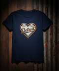 This comfy tee celebrates Detroit pride with a bold heart-shaped baseball design and the word Detroit scripted across the chest. The vintage-inspired orange and white print pops against a deep navy background, creating a timeless look for any Tigers fan or proud Detroiter. Made from a soft, breathable 60/40 cotton-poly blend, this shirt is perfect for game day or everyday wear. Available in all sizes for the perfect fit.