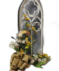 Cathedral-Style Wooden Floral Frame with Burlap Bow