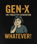A classic black tee with bold retro flair celebrating the iconic Gen X spirit of independence and sarcasm.