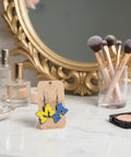 Blue and yellow acrylic, stainless steel (hypoallergenic)