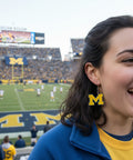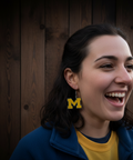 Handmade maize and blue M earrings for fans, grads, and lovers of Wolverine pride.