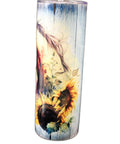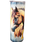 Saddle up your sips with this stunning 20oz tumbler featuring a vivid watercolor horse and sunflower design, all set against a rustic blue barnwood background. This travel tumbler captures country charm and natural beauty in one functional, easy-to-carry drink companion.
