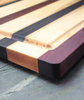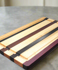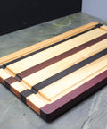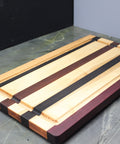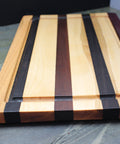 wenge cutting board, handcrafted wood board, maple wenge charcuterie board, chamfered corner board, artisan cutting board, juice groove kitchen board, Mike Powers handmade board, made in Michigan kitchenware, exotic wood cutting board, Armade in MI woodcraft