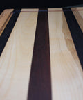 This sharp and modern board by Michigan artisan Mike Powers is handcrafted using rich wenge and smooth maple hardwoods. The deep black-brown tones of wenge contrast beautifully with the pale warmth of maple, creating a clean-lined, high-contrast board that's both practical and striking. The beveled (chamfered) corners and juice groove are precision-cut, making this board a functional piece of art perfect for prep, serving, or display. Designed and made right here in our local community, it’s built to be admired and used for years.
