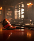 Classic red and black face striping detail