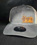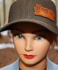 This cozy and casual trucker hat by DTI features a soft gray cotton front, breathable beige mesh back, and a curved bill for everyday wear. The real standout is the cheerful leather patch showing peace signs, hearts, and florals with the phrase Peace Love and Flowers—perfect for spreading positive vibes wherever you go. It's a charming mix of rustic style and boho flair made for sunny days and simple living.