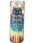 Reading is Dreaming with Your Eyes Open, 20 ounce stainless steel travel cup. Keeps your beverages hot or cold for countless hours