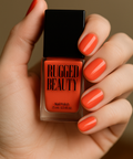 Vibrant coral polish made for strong women who love bold color and clean beauty.