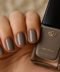 A soft taupe polish with warm mocha tones that feels grounded and timeless.