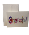 Celebrate life’s big moments with this vibrant hand-stitched Congrats card by Sukis Creations. Each letter is a mini masterpiece—crafted from colorful fabric and paper, outlined with stitching, and accented with tiny sewn-on buttons. Made on heavyweight ivory cardstock and blank inside for your message, this card comes with a coordinating envelope. It’s perfect for graduations, new jobs, engagements, or any celebration that deserves a handmade cheer. Every card is lovingly made in Armada, Michigan.