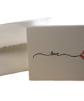 Celebrate love in its purest form with this elegant stitched card from Sukis Creations. Featuring a red heart balloon and the word “love” stitched into the string, this design is embroidered with red and black thread on creamy ivory cardstock. Whether you use it for Valentine’s Day, anniversaries, or just to remind someone you care, this blank card adds a soft, handmade touch. Comes with a matching envelope featuring a deckled flap for added character. Made in small batches in Michigan.
