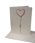 A sweet hand-stitched heart balloon card with floating script and timeless charm.