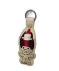 Bring a bit of nostalgic fun to your everyday carry with this Troll-Inspired Lip Balm Holder Keychain. Featuring a whimsical embroidered troll figure with iconic red hair and a happy face, this unique accessory is handcrafted from beige faux leather. The tube is cleverly tucked into the troll’s “hair,” creating a charming and functional design. A neutral snap button and keyring complete the playful look, making it easy to clip onto backpacks, keys, or purses.