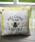 Add a pop of sunshine to your home with this 15" x 15" handmade pillow from Suki B's Creations. Featuring a vibrant yellow daisy and bumblebee print on the back and borders, the front is finished with a beautifully embroidered Welcome to Our Hive design. Made from soft pre-shrunk cotton, it's both cozy and durable—perfect for farmhouse charm, seasonal decor, or gifting to your favorite bee-lover.