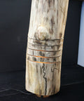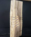 Crafted by Rustic Log Creations, this 12x5 inch glow lamp is a bold yet earthy lighting piece made from a beautifully curved piece of natural wood. Its unique spalted grain patterns and soft LED light peeking through layered grooves create a peaceful, ambient glow. Designed to bring the warmth of the woods into your home, it's both functional and artistic—perfect for rustic, farmhouse, or modern-natural styles. No two are ever alike, thanks to the organic nature of the wood.