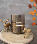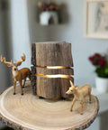 A glowing log lamp with hand-painted deer figures brings cozy forest vibes home.