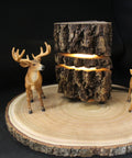 Crafted with heart and rooted in Michigan woods, this Woodland Deer Scene Lamp from Rustic Log Creations features a hand-cut log lamp with glowing slices of warm light nestled between real bark. Set on a tree-slice base, it showcases a lifelike buck and doe, capturing the serene charm of a quiet forest moment. Whether as a gift or a cabin accent, this piece blends rustic style and soft lighting with natural woodland wonder.
